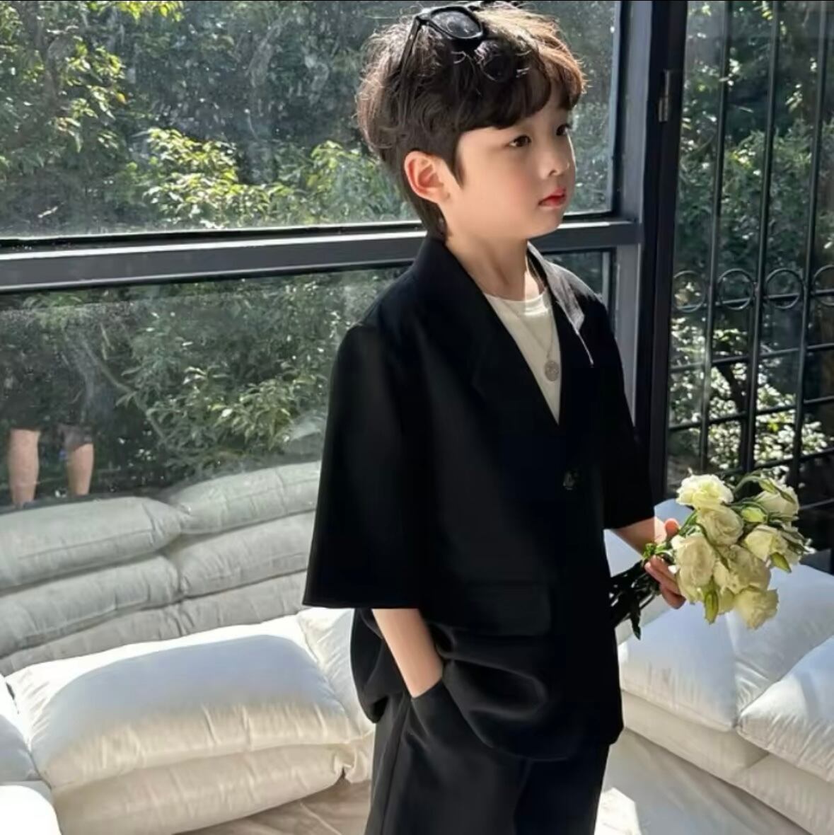 韓国スタイルの半袖シャツとショーツの2ピースセット。