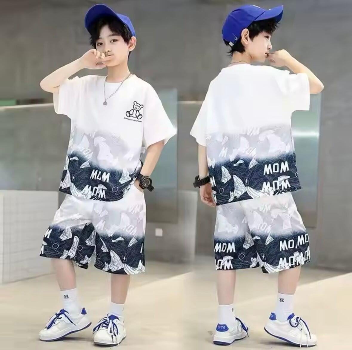 男の子のための夏にぴったりなセットアップが登場しました!柔らかな綿素材で作られたグラデーションデザインのスポーツスーツは、通気性が良くて着心地抜群です。半袖のショートパンツも含まれており、ストリートウェアとしても最適。新しいスタイルを求める5歳から14歳の男の子にぴったりのアイテムです。