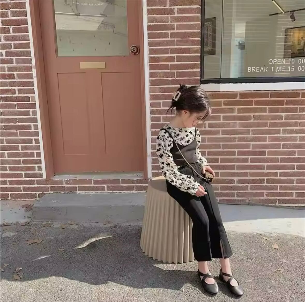 この可愛らしいフローラルウェアセットは、花柄長袖シャツ、ビスチェ、パンツの3点セット。